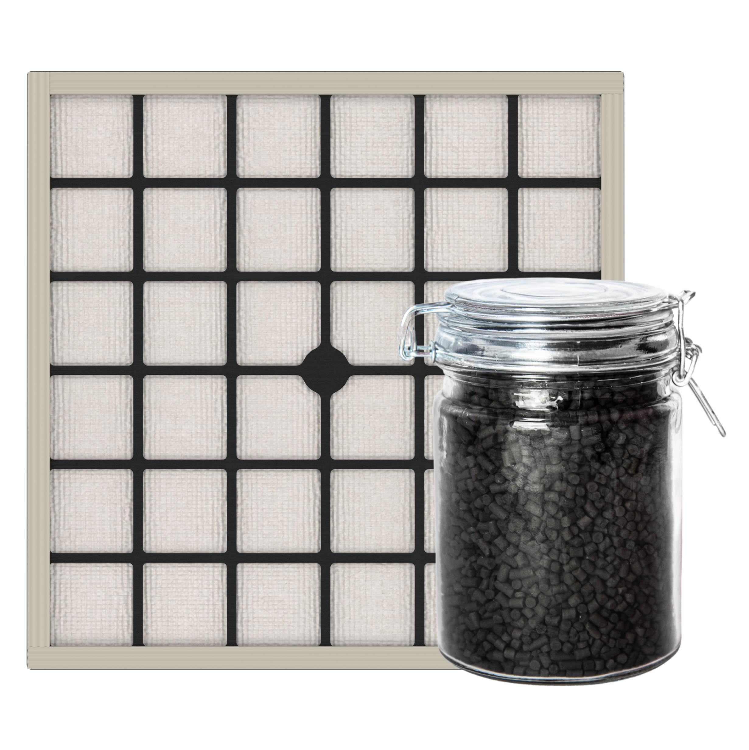 Die entsprechende Anzahl von zugeschnittene Vliesmatten (2 pro Filter) wird anhand des Kohlegewichtes dazu gegeben. Beim Bestellen von 6 kg Aktivkohle werden also Filtermatten für insgesamt 5 Filter mitgeliefert. Das nervige und auffällige schleppen von großen und schweren Aktivkohlefiltern ist daher von gestern.