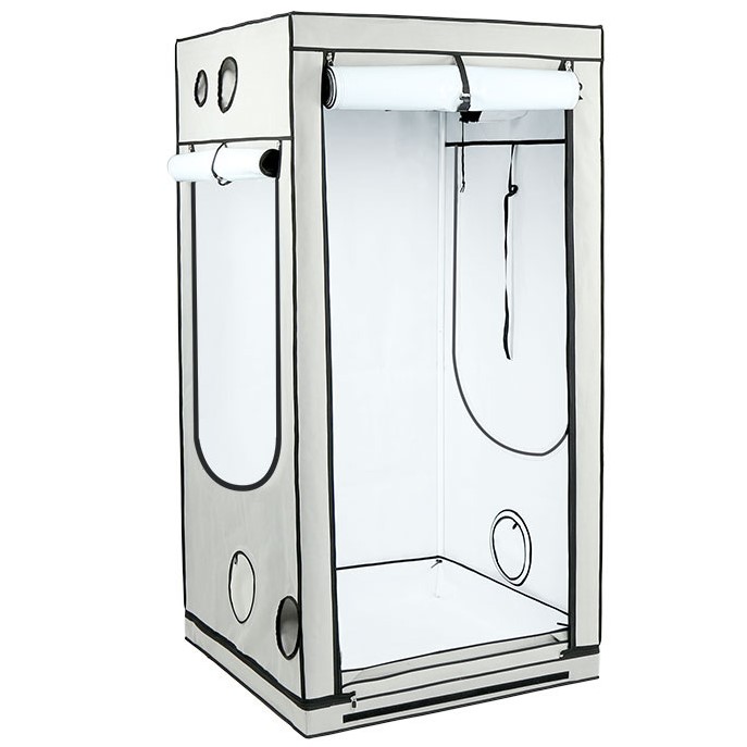 Die Höhe der Box von 2 Metern reicht in der Regel vollkommen aus. Sollte mehr Platz benötigt werden, empfehlen wir die 20 cm höhere HOMEbox Ambient Q100+ (220 cm Gesamthöhe). Der einzige Unterschied der Pflanzenanzuchtzelte (Q100 und Q100+) liegt in der Höhendifferenz von 20cm. Bei besonders platzsparenden Setups können auch Ebenen/Böden eingebaut werden, sodass die effektive Kultivierungsfläche vervielfältigt werden kann.